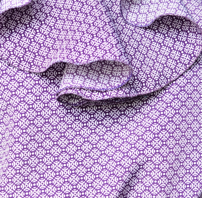 Это платье я задумывала как обычное, без конструктивных изысков и заворотов - хотелось просто платье-макси с некоторым изящным элементом, в качестве которого выступил волан. Ткань из магазина OnlineTkani - непросвечивающий п/э типа твила - тонкий, плотный и пластичный. Я уже как-то упоминала, что редко покупаю искусственные ткани, но если принт покоряет меня, то я делаю исключение, как и в этот раз. И цвет, и мелкий галстучный рисунок сразу мне ужасно понравились, и я не устояла ))) Выкройка индивидуальная, но совсем простая - боковые вытачки, чуть расклешенный силуэт и кулиска на резинке. Волан я взяла от одной бурдовской модели, откорректировала его длину и обработала узким зигзагом. Низ платья просто подвернула и застрочила, проймы обработаны косой бейкой, а горловина - обтачкой из основной ткани, проклеенной дублерином. Платье без карманов, что создает для меня некоторый дискомфорт, но несмотря на мою приверженность делать карманы везде, в этом случае, мне кажется, они все же были излишни.